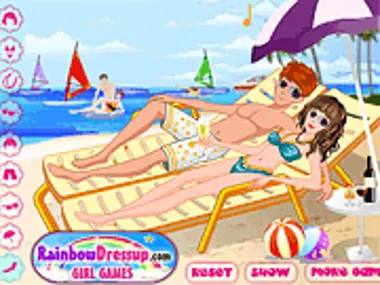 This couple are enjoying in their beach vacation. You just need to choose which of swimsuits they will be wear.