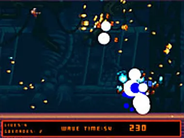 This is a high score chaser. Five, 60 second waves plus a boss at the end. Destroy enemies and collect power-ups to increase your score.