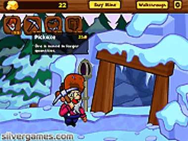 Click the gold mine to mine for gold. Buy works & other equipment to speed up your gold production.