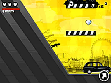 Jump on the platforms as you evade the floating wolf head. Grab the diamonds as quick as possible.