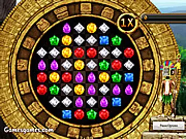 Monkey Match 3 or more gems to clear them from the board before time's up. For special power-ups, match more than 3. Keep in mind some special gems turn to immovable stone if you don't clear them in time. Clear gems in quick succession so both your multiplier—and the monkey chief—are dancing!