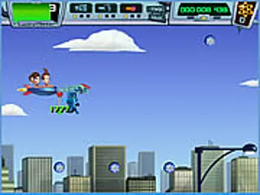 First choose the game's difficulty level. Secondly, choose between Jimmy and Timmy, one pilots the rocket the other fires weapons from th back seat. Eliminate enemies to earn big stars and neutrons.