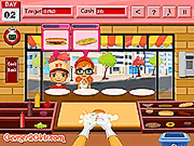 Kathryn is running her own fast food restaurant and she needs your help to keep the restaurant open. You can see the recipe for each food in the cookbook. If you run out of supplies, call the market and ask for more. Don't keep the customers waiting or they will get angry and leave!