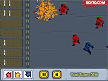 Defend your factory from the attacking robots. Shoot them at sight with missiles.
