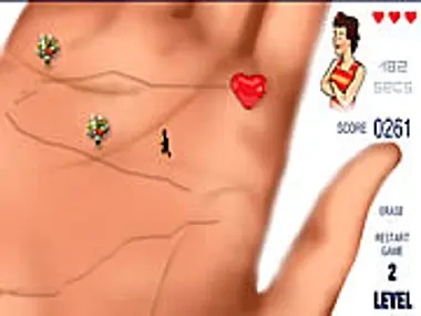 Draw lines on the palm and help the boy reach the heart.