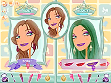 Click through the make-up tabs, then use the arrows to browse. Match your model to the photo, by clicking on the make-up options to apply changes. Be quick on the draw—you're racing the make-up artist to your right!