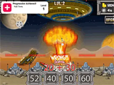 Defend your base from invaders and stray asteroids! Answer Math Questions correctly to defeat your enemies and level up your planetary presence!