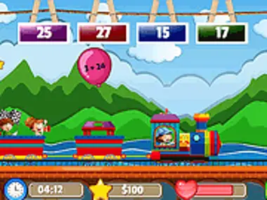 Math Train Addition is an educational and fun game. In this game you will see a math addition-problem on the balloon and 4 possible options will come from the right. To select correct answer from the options, tap the screen when the correct answer is over the balloon such that the balloon hits the correct answer. Hitting an incorrect number will reduce your health. Collect stars to get more points. Keep playing until the time runs out or your health reaches zero. Have fun playing this game here at Y8.com!