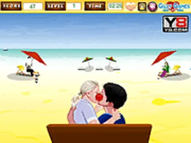 In first two levels a teen girl has to kiss her boy friend without getting noticed by others. The third level of the game will be very interesting. You have to help two pairs to kiss each other. There will be some one on the left to watch the pairs who are in the left and same as on the right side. While one pair is being watched, the other pair can continue kissing.