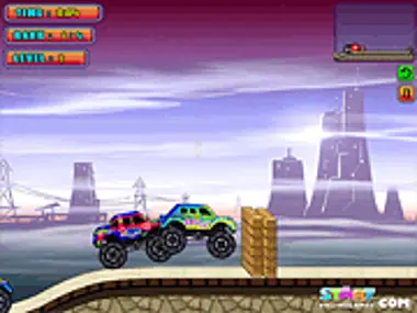 Monster trucks are all pumped up to race against each other. Smash the obstacles in your way and compete with other rivals in 10 tricky tracks. Choose your truck from 4 different trucks and win all the levels, and make a high score dont show mercy destroy all the objects glass barrels or any thing just smash it ahhhh...