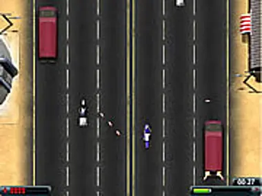 Drive your motorcycle down the street shooting enemies and avoiding their fire. Grab powerups!