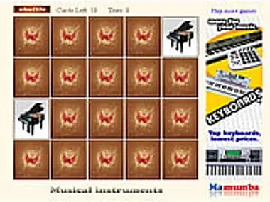 Another online game for training visual memory, this time with musical instruments. Find matching pair of cards by clicking on them.