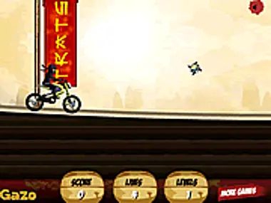 Ride the motorbike along the challenging road.