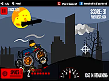 Tweak your vehicle specs & outrun the nuke. Shoot boxes & people in your path to not get stuck.