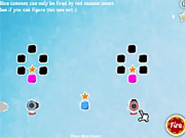 Drag, drop & rotate turrets to shoot different types of blocks to release the all the stars.