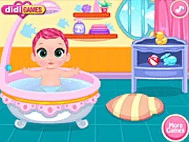 Pinkie's parent won't be at home tonight. Can you take care of this little baby girl? She looks so sleepy. Let's put her in her cradle. But before that, warm bath would be so nice to help her sleep well. Wash her gently while playing games with her. Finally dress her up and kiss her good night.