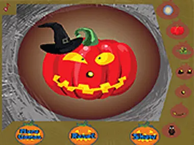 In this fun Halloween game, pumpkin decorating is your task. Choose eyes, ears, a nose and a mouth and more for your pumpkin. Make your pumpkin as scary or cute as you like, it's up to you. When you're all done you can safe him to your computer and send him by e-mail to your friends and family. How many pumpkins will you decorate. You can play this fun Halloween game over and over again!