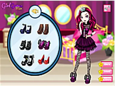 Ever After High show tells the story of the most famous prodigies in the world: the prissy daughters of your favorite fairy tale characters. These teenager girls are like any normal teens, only that they have a very strict legacy from which they can't escape that easily. So is Raven Queen, the sweet daughter of the Evil Queen from Snow White's fairy tale who became one of the most gorgeous princess in the Ever After High's dorms. Just take a peek in her glam wardrobe. Vintage inspired gowns, sheer blouses, fishnet stockings and sky high pumps, you can find anything in her closet. She is prepping for a new school day and she wants to ditch her old school uniform and try out new combos. Will you give her a stylish, helping hand? Enjoy this Ever After dress up game!