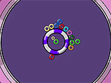 Rotate the center of the game to align the falling rings next to others of the same color.