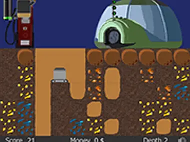 Dig through the ground as you mine to upgrade your robo digger. Beware, you can't fly sideways.