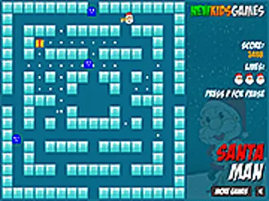 Santa Man is a free online game from genre of maze and kids games. Move Santa throughout the maze by using the arrow keys located on your keyboard. The objective is to eat the dots and to progress to another higher level, you must eat all of them! There are some monsters that you need to keep away from, so give your best to do so. But they can also be eaten by you, so eat those gifts and you'll be able to succeed in that. It's time to start, so have a great time with this game!