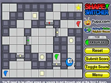 Use arrow keys to bounce around and land on special tiles that change your shape or color. Special doors require you to be the right color or shape or both to open, so shape shift in the right order to open the doors and reach the star tile to advance to the next level. If you get stuck, use the reset button to restart the level.
