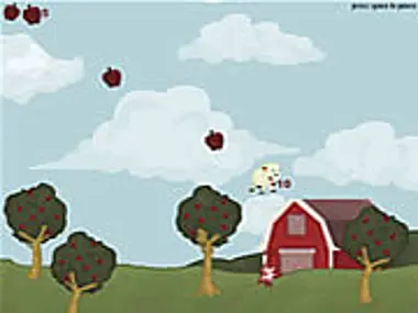 Use your mouse to guide the cute fuzzy sheep through the air while listening to happy light music. Jump on the apples to eat them and get points. Jump on a cow for extra points! There are difficulty bars that fall down every once in a while and they will make the game temporarily more difficult, they are impossible to avoid without falling so you’ll have to do your best.