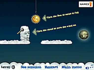 A physics-puzzle about the friendly bickering between the Moon and the Sun. Help the sun change night to day, and the moon to change it back! Use objects to hit the moon with the sun, or the other way around.