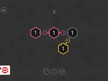 The grey Shishagons are free to gain any color given to them, while colored Shishagons can only deliver color to ones with the same color. As the levels continue on, you will find that some of these Shishagons only can move their number in specific directions, interacting with selected Shishagons. See if you can master these numbers and get everything to zero.
