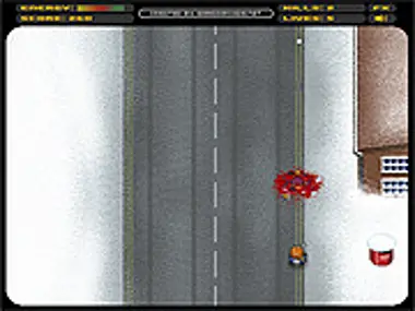 Guide the snow trooper through snowy suburbia in search of the grand evil gang leader!
