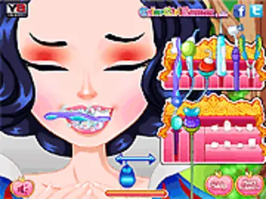 We all know how much Snow White loves apples. She eats one apple every day. But today when she is having an apple, suddenly her teeth hurt so much and she can't eat anything. The seven dwarts bring you, the best dentist to give Snow White a dental care. Please use all these dental tools and cure the cavities and bad teeth. After you finish the treatment, you could give Snow White a makeup and choose beautiful dress and accessories. Have fun!