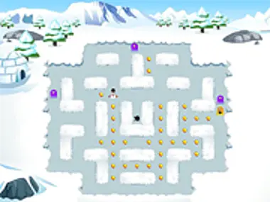 Pacman in the Winter: Snowman. Eat the yellow dots and avoid the ghosts. Use the arrow keys to move or swipe on your touch screen.
