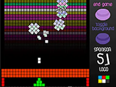 A simple pixel shooter with colorful graphics. Shoot the blocks and keep them from touching the white line (located under the player). You have a barricade, but it's only going to last you so long! There are 20 stages in which the bricks speed up. Left and right arrow keys are used for movement, the space bar for shooting.