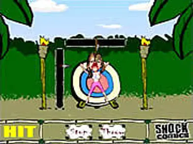 Watch the moving spear heads. When you want them to stop, press the "Stop" button, then when both spear heads had been set, press the "Throw" button to throw the spear. The spear will be thrown to the coordinates in which you stop the spear heads.