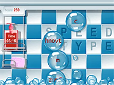 The aim of the game is to type the group of letters in the bubbles that float on the screen as fast as possible.