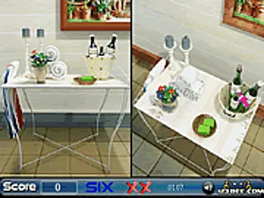 Identify the difference in the two different views of the same objects and click ti to confirm. You get 50 points for every correct click and you lose 25 points for every wrong click.