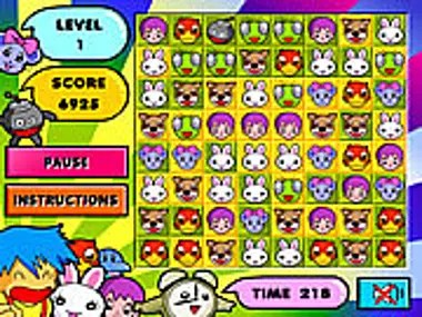 Swap adjacent faces to align sets of 3 or more. A winning set is 3 or more identical faces. Spaces turn yellow when faces are matched. Turn all space to yellow to win!