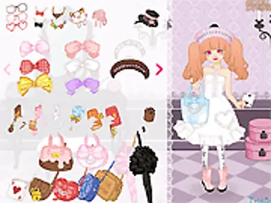 It's a "Mega" dress up, featuring over 200 beautiful items that you can color, mix and match to your heart's delight! You can even apply kawawii fabric patterns, featuring cupcakes, ponies and lollipops! Then decorate your lolita with customizable drag and drop, endless ruffles, fashionable stockings (woo, argyle!) and adorable shoes.