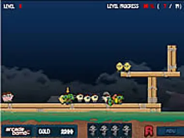 The zombies had to came up with a new method to zombify humans now that the humans fortified their selves inside big walls. Launch the zombies with a big catapult over the wall and watch the zombie mayhem unfold.