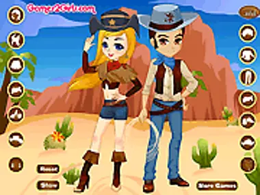 Jessie and Edward need a pretty western style before they take a seat in the saloon! It's been a tiring day on horses, they chased a few burglars and the day has finally come to an end. Now they need a stormy poker game with old buddies. Help them with the good fashion!