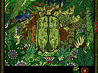 This is a point and click game with no possibility of saving. The player moves around using the colored triangle seen near the bottom of the screen. Help him escape the mysterious island!