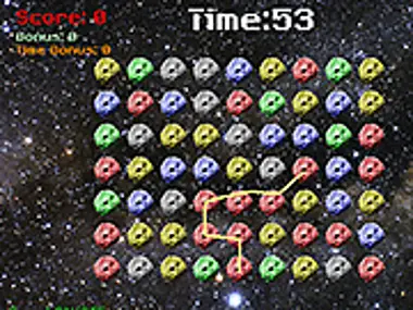 Hold left button and move over the same colored rocks. After release left button will be rocks destroyed. You must join minimum 2 rocks. The goal is to destroy all rocks in the time limit! Time limit is after each round shorter.
