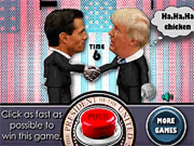 Trumps Awkward HandShakes - Fun flash game about Trump's awkward handshakes. Play this fun game and try not to laugh. Click the PUSH button as fast as possible to win this game. If you stop clicking or clicking too slow, you will lose the game. Have fun now!