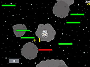 Green platforms are good, red platforms are generally not good. Objects you encounter in the vacuum can help or (most likely) hurt you. How long and strong can you keep it up?