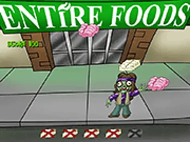 This zombie decided to become a vegetarian. So instead of munching those human brains, he only eats tofu. Collect all the falling tofu and avoid the human brains.