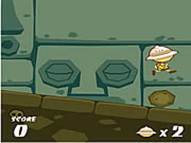 Lie down or jump to avoid the rolling rocks, arrows and bats.