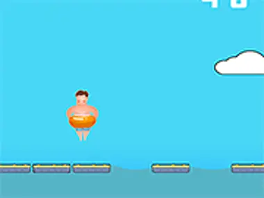 This is game with sweet chubby kid who does not know to swim. So your job is to pass this kids in safe place without drowning. To do this you need to jump over platforms. But on left tap on the screen or left arrow on keyboard, the kids will jump only one platform and on right arrow or tap screen on the right side the kid will jump two platforms. Start to play and enjoy in this game. Watch on your time. You can catch clocks who will give you extra time.