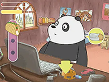 We Bare Bears: Fun Raiser is a fun game featuring the favorite bear trio made up of Grizz, Panda, and Ice Bear. They are at home now, and you have to do some research regarding their day to day lives and what they do to keep themselves entertained. Make sure they get whatever they want. To do that, keep the bears under observation and whenever there pops a dialog with some pictures with food or a game get it to them as fast as you can. Click on the arrow at the bottom of the screen, and it will take you to Chloe, who has everything prepared on her desk. Take whatever you need and then go back to the bear and give it to him. Those animals get border quickly aside from being hungry all the time. So buckle up and prepare to move fast! Watch out for the bar at the top that has an apple near it because it tells you exactly how hungry the bear is, and how fast you should bring him something to eat. Below the hunger bar, there will appear later on another one that has a bear face next to it. This one will show you how your bear is feeling, whether he is very bored or entertained. When he has enough food, he will surely ask for some sort of entertainment like some books, the mobile phone, or the remote control. Make sure that both bars are as full as possible at all times so that you can have a happy bear that is willing to undergo your study. Enjoy playing this super fun Bare Bears game here at Y8.com!