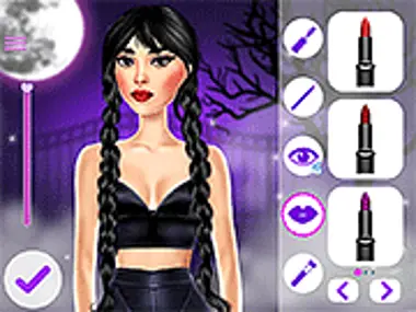 With Wednesday Dark Academia, you can choose from various unique and stylish outfits, accessories, and makeup options. Start by creating the perfect look for Wednesday. With the first unit, you can do her makeup, giving her a look that's perfect for school or the ballroom. Get creative with the dark lipstick and eyeshadow, and with a little bit of imagination, you can create a look that's all your own. You can then complete her bold look with a black mascara as you continue playing this online makeup game for girls. Are you ready for some more? Then let's continue with the first fashion challenge we've prepared for you. Get ready to dress up Wednesday for a fun day at school, and then see what party look you can put together for her. Style her hair and pick the right accessories for a complete look. Enjoy playing this girl make over game here at Y8.com!