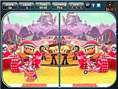 Identify the differences and click it to confirm. You get 50 points for every correct click and lose 10 points for every wrong click. At the end of the third wrong click the game gets over. Click on MUTE button to mute the sound.